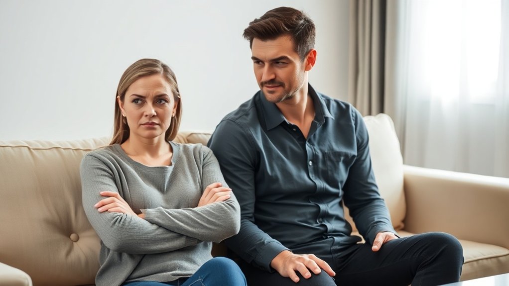 Facial tension manifests through clenched jaw muscles, tightened lips, or forced smiles that don’t reach the eyes. Partners may notice their spouse’s eyebrows furrow momentarily when discussing certain topics, or observe eyes that dart away during vital conversations. Inconsistent expressions, such as nodding while displaying doubt, signal internal discord. The mouth often betrays deception through subtle downturns or asymmetrical movements that don’t align with verbal communication. Recognizing these signs of possible infidelity can help deepen your understanding of the emotional complexities in a relationship.