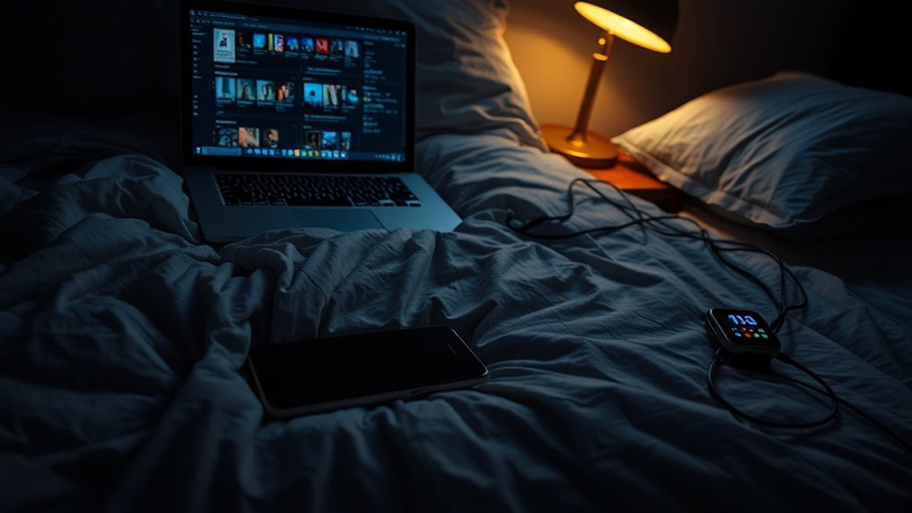 Beyond concealing digital footprints, partners may exhibit noticeable changes in their device usage patterns that extend to physical behavior and location preferences. Device obsession manifests as prolonged screen time in private spaces, creating virtual detachment from shared activities. Technology reliance intensifies when spouses retreat to bathrooms, bedrooms, or outdoor areas with phones, demonstrating clear attention diversion from family interactions. This digital distraction often coincides with communication breakdown during previously intimate moments. Device dependency becomes apparent through constant notification checking and social media addiction behaviors that prioritize online engagement over present relationships. Online secrecy drives partners to physically distance themselves while using devices, establishing patterns of isolation that disrupt normal household dynamics and emotional connection opportunities. Additionally, if concerns arise, consulting with experienced investigators can provide insights on navigating suspicions related to device usage and privacy laws.