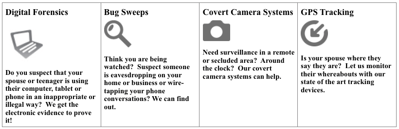 - Internet/Online Dating/Cyber Affairs Investigations